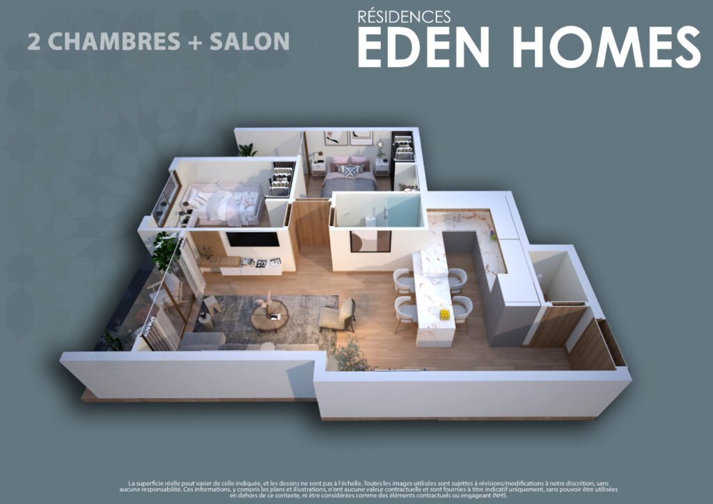 Configuration : 2 Chambres + Salon (F3)